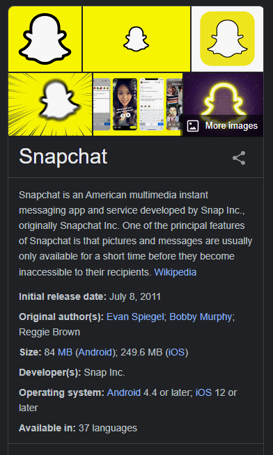 - Snap: a photo or video that you share with your friends in real-time. Disappears after viewing.