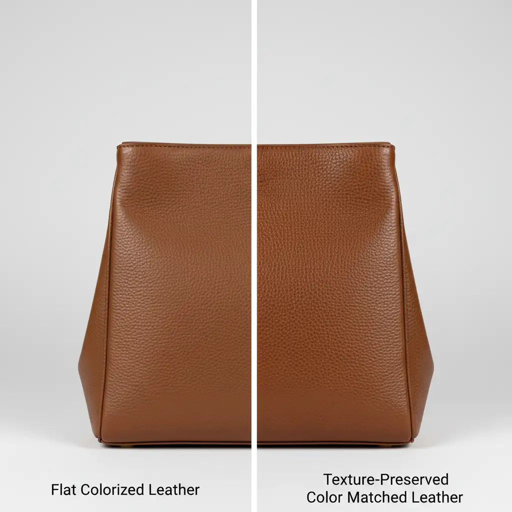 If you manage high-volume e-commerce workflows, you already know the nightmare of photographing leather. Varying strobe lighting, natural patina, and surface reflections create massive hue inconsistencies across your catalog. When you try to fix color matching it using standard Hue/Saturation sliders, you destroy the natural micro-contrast of the leather grain, leaving your premium products looking like flat, artificial plastic.