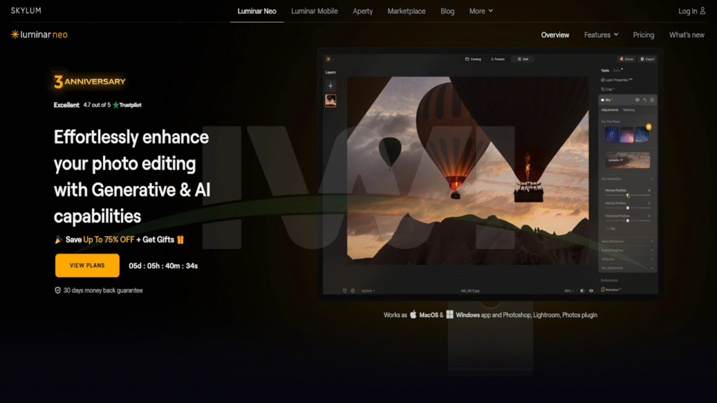 Skylum Luminar AI is an excellent choice for both beginners and professionals who want an easy, efficient way to color correct old photos without spending too much time learning complex software. It is available as a one-time purchase, with no subscription required, which can be a great advantage for users who want to avoid recurring costs.