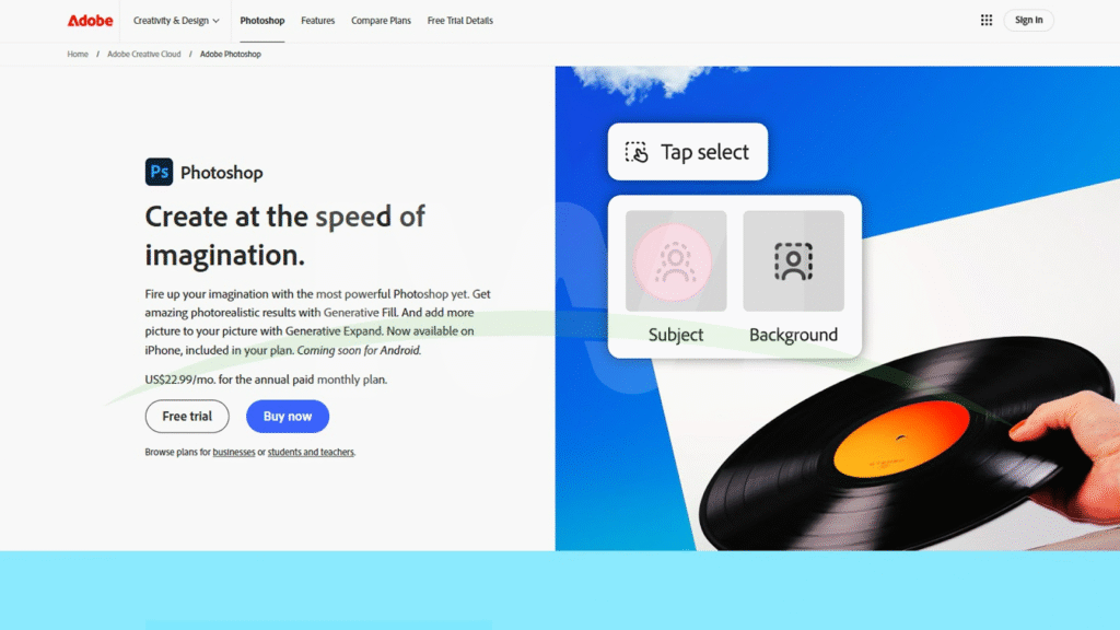 Adobe Photoshop is available on subscription, and it offers a free trial to get started.