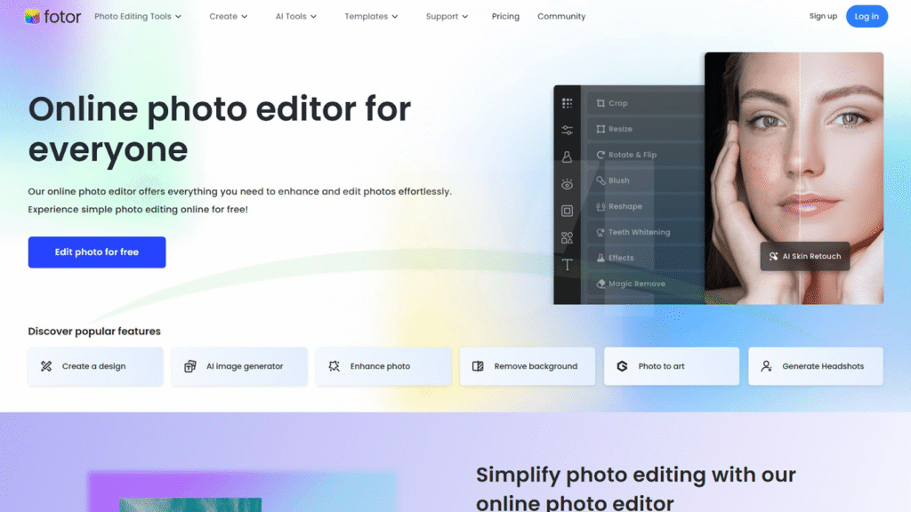 For users who need a quick and efficient way to color correct old photos without any complicated processes, Fotor is an excellent choice. It’s particularly useful for those who want a fast fix for faded photos without delving into complex photo editing software. Fotor is free to use, with premium options available for additional features.