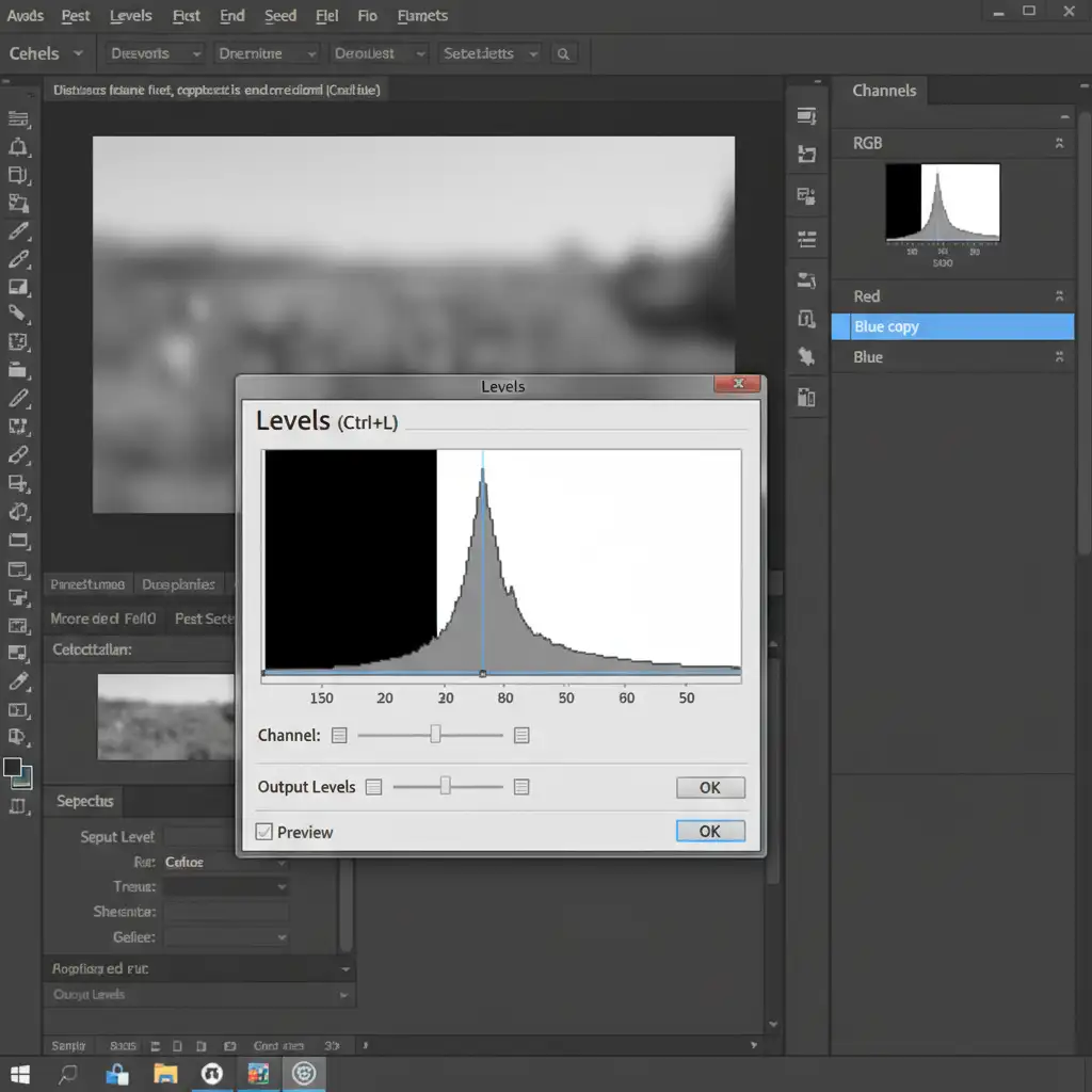 - Adjust the sliders to crush the blacks and boost the whites. You are essentially creating a custom luminosity mask where white equals 100% opacity and black equals 100% transparency.