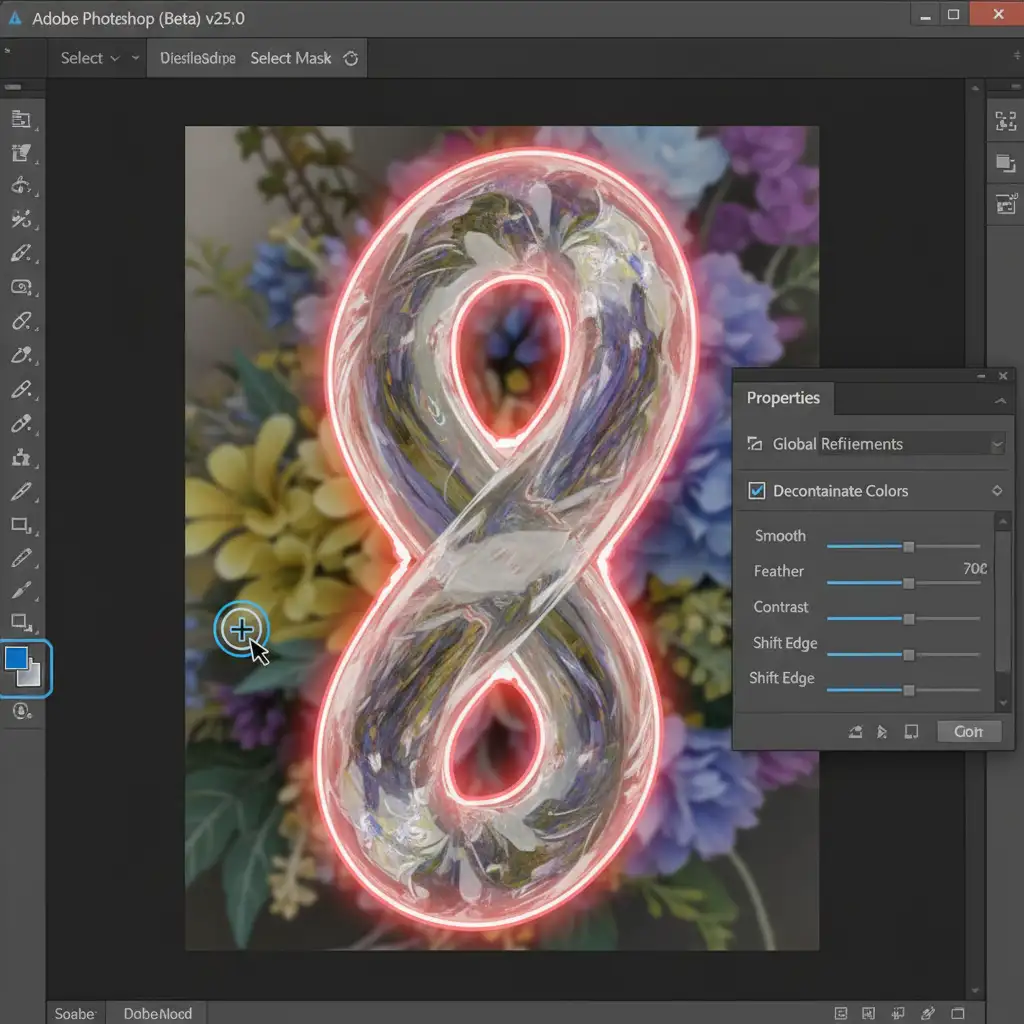 If your glass product has a relatively simple background, you can salvage a poor AI selection using Photoshop’s built-in refinement tools.
