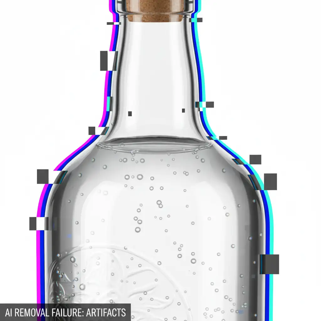 When these algorithms process transparent or refractive glass, the AI engine cannot differentiate between the background pixels and the glass surface itself. Current AI models cannot accurately calculate the refractive index of physical objects. Furthermore, they cannot cleanly separate specular highlights and shadows from the original backdrop.