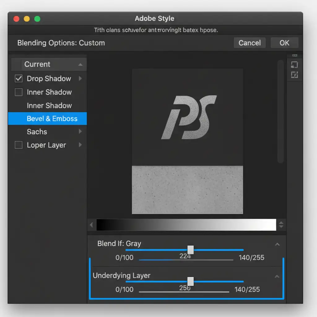 - Blend the Textures: Double-click the logo layer to open the Layer Style dialog box. Look at the Blend If section at the bottom.