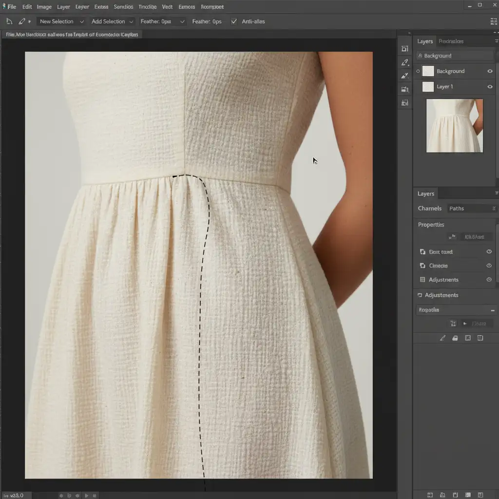 You are trying to smooth out a high-end apparel shot in Photoshop v25.0+, but the AI just ruined the garment clothes wrinkle. Instead of removing a simple crease, Generative Fill hallucinated an entirely new pocket, altered the fashion designer’s cut, or completely destroyed the delicate fabric grain.