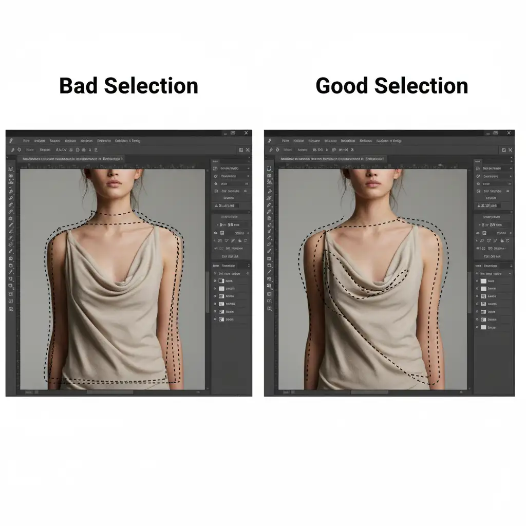 - Shrink Your Selection: Grab the Lasso Tool and drastically reduce your selection size. Ensure your selection includes significantly less exposed skin and strictly hugs the clothing element you are trying to alter.