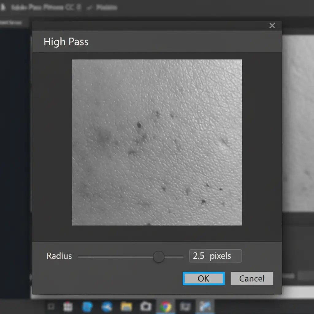 - Set the radius between 2.0 to 4.0 pixels. You want to see just the edges of the skin pores and fine hairs appear on the gray canvas. Click OK.