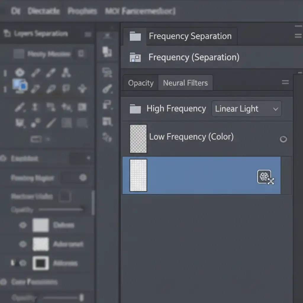 For high-end fashion and beauty retouching, opacity blending isn’t enough. You need absolute control over color and texture. By combining Neural Filters with a classic Frequency Separation workflow, you get the best of both worlds: AI-driven color smoothing and 100% untouched original skin texture.