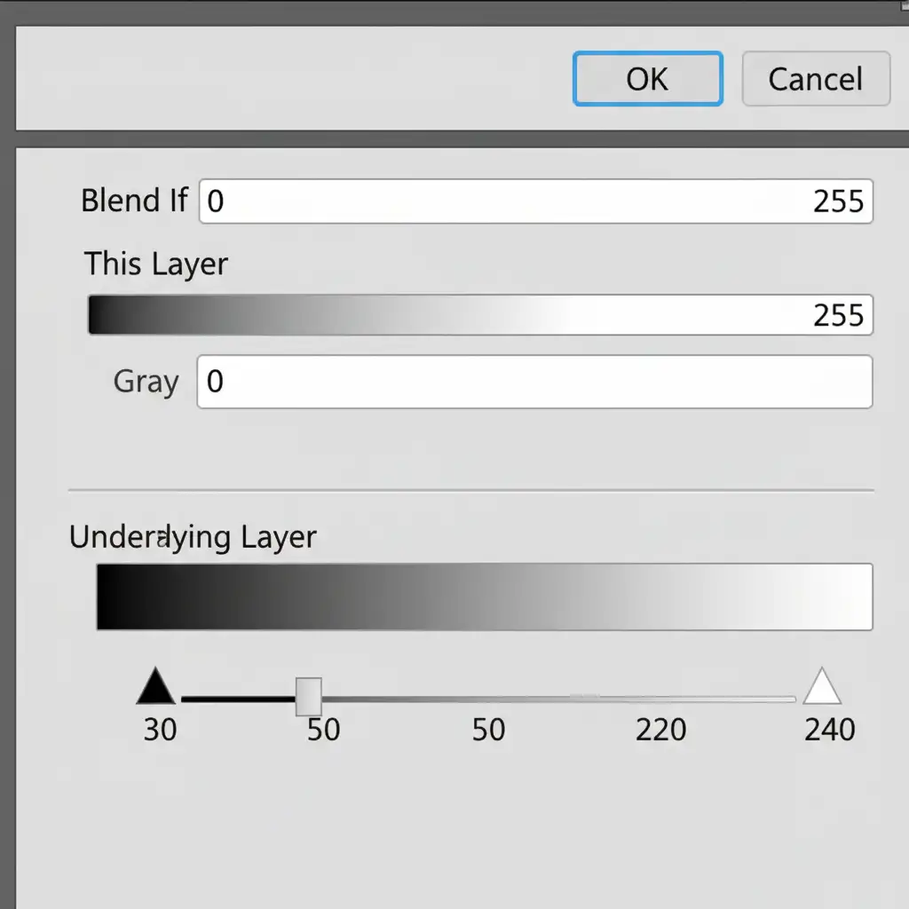 - Look at the bottom section labeled Blend If, specifically the Underlying Layer gradient bar.