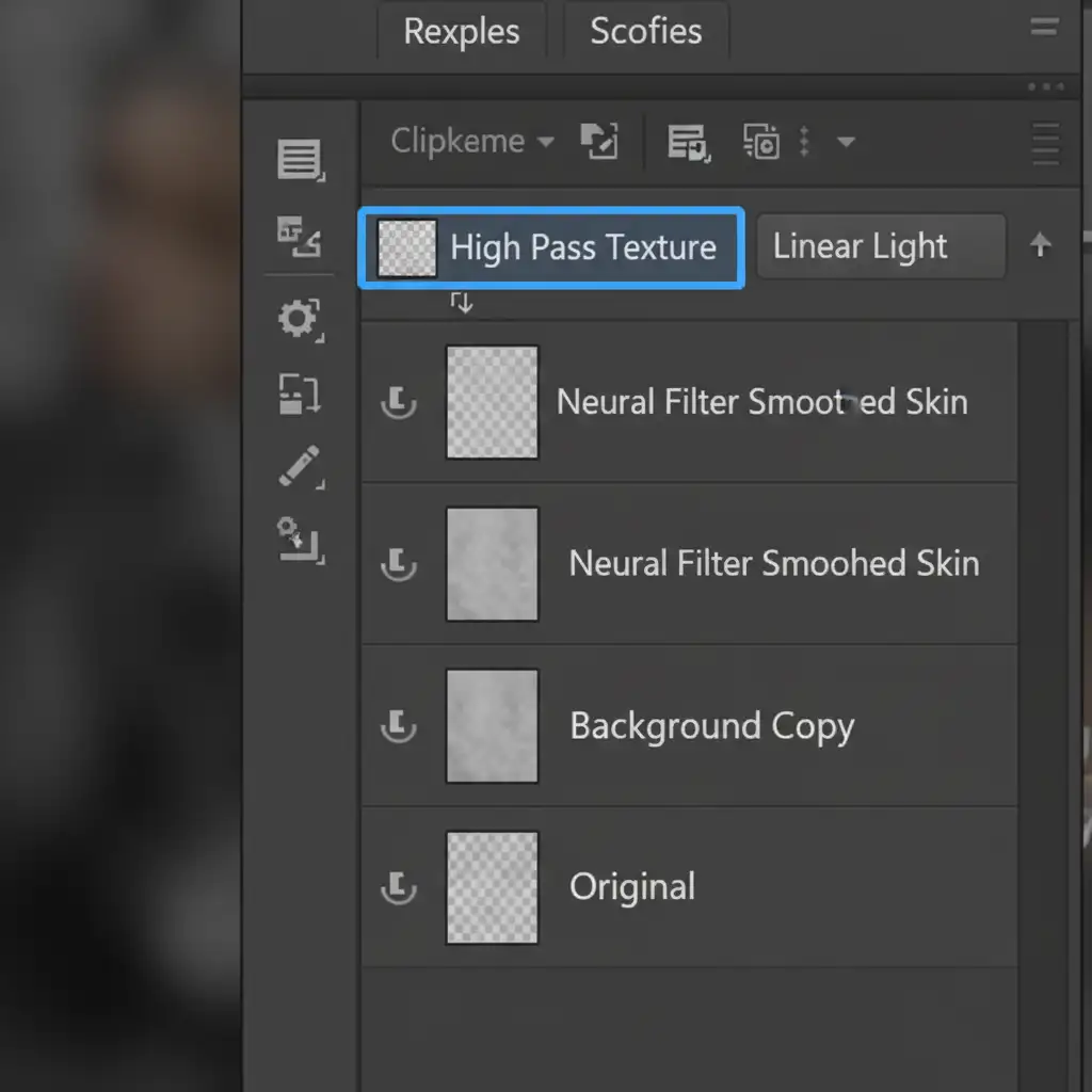 For high-end beauty and fashion retouching, simulating noise isn’t enough. You need the subject’s actual pore texture back. This method utilizes a High Pass filter to extract the original texture and map it precisely over the AI-smoothed skin.