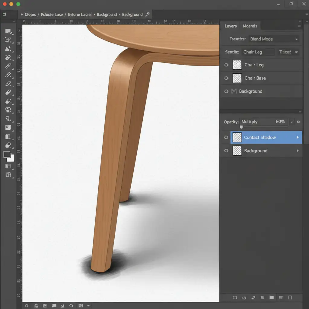- Add a pre-built, static contact shadow layer (set to Multiply) to ground the object uniformly.