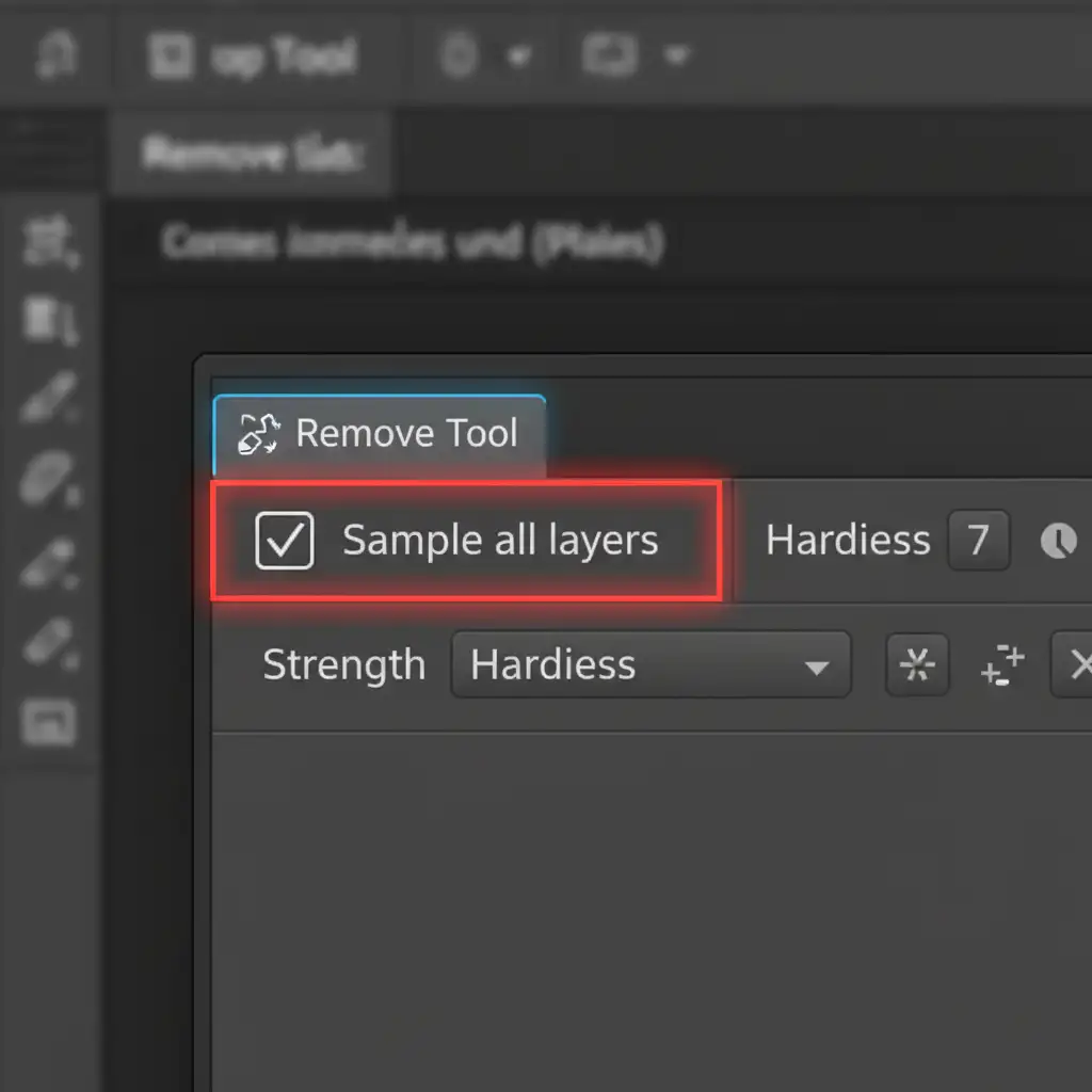 - In the top options bar, ensure Sample all layers are checked.