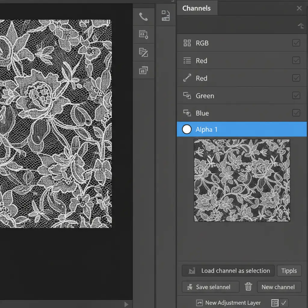 - Hold Cmd/Ctrl and click the thumbnail of your adjusted Alpha Channel. This loads a perfect Luminosity Selection based on the exact transparency of the fabric.