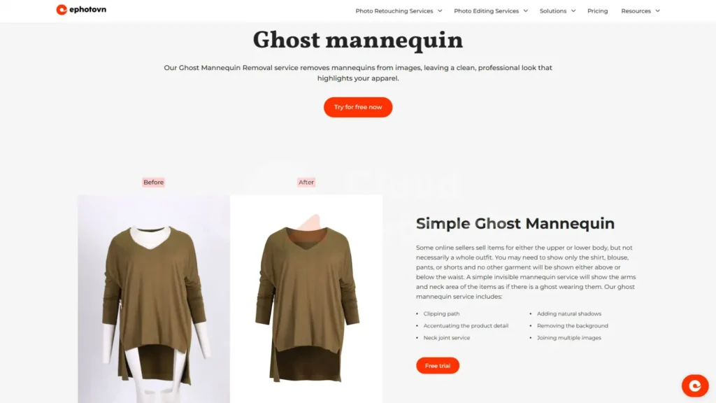 Ephotovn offers a balanced editing style that works well for lookbooks, e-commerce listings, and catalog spreads. Their ability to retain accurate fabric textures makes them a popular choice for brands that value subtle enhancements rather than heavy manipulation. They remain one of the more refined real Ghost Mannequin Service Providers available online today.