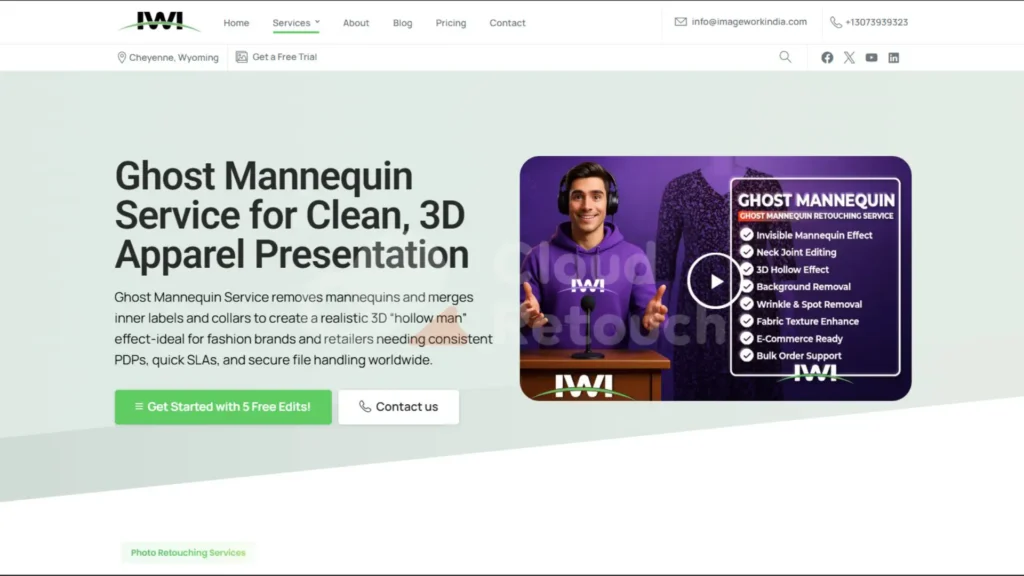 Image Work India is another reputable name among global Ghost Mannequin Service Providers, known for delivering clean, accurate, and consistent apparel retouching. They work with fashion studios, photographers, and online sellers who need smooth, properly aligned ghost mannequin composites. Their strength lies in their ability to balance detail-oriented editing with affordability, making them a strong competitor in the global market.