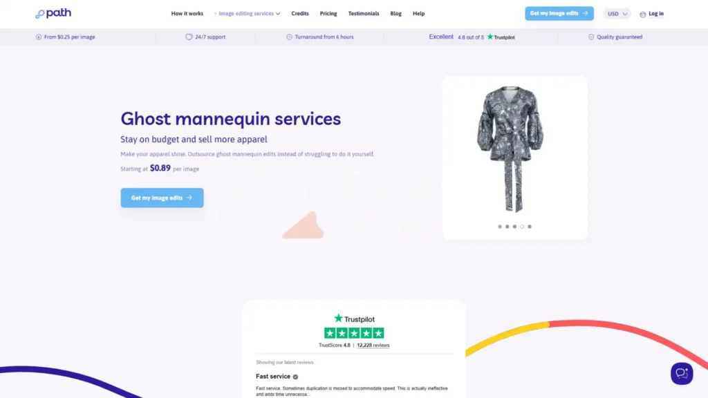 Path Edits is another recognized provider offering dependable ghost mannequin editing services for apparel businesses. Their introduction into the market as a consistent and affordable studio has helped them attract many start-ups and mid-level fashion brands. Path Edits positions itself as a practical and reliable option for clients who need dependable results without premium-tier pricing. Their team works with a wide range of clothing categories, ensuring clean neck-joint corrections and natural shadow removal.