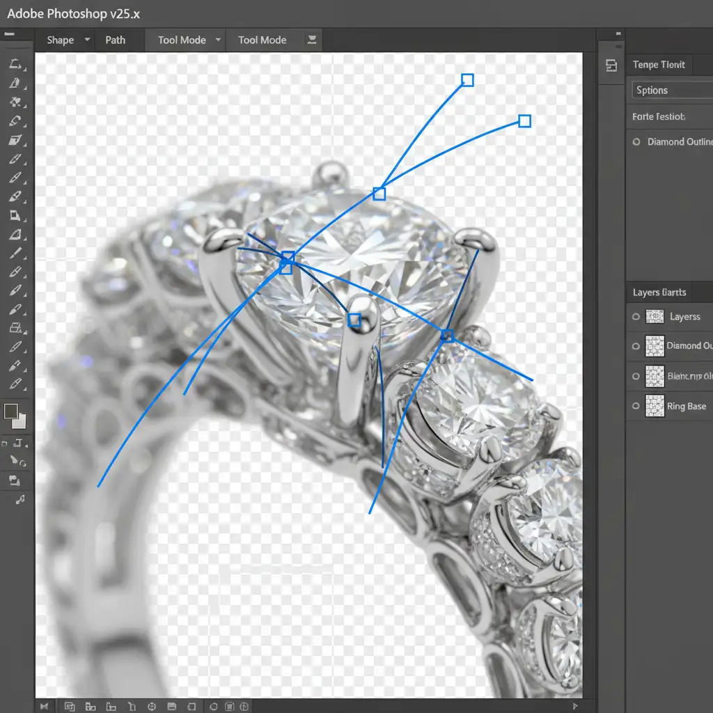 The foundation of any high-end jewelry retouch starts with the Pen Tool (P). Avoid automated selection tools; they cannot interpret the complex refractions of a diamond.