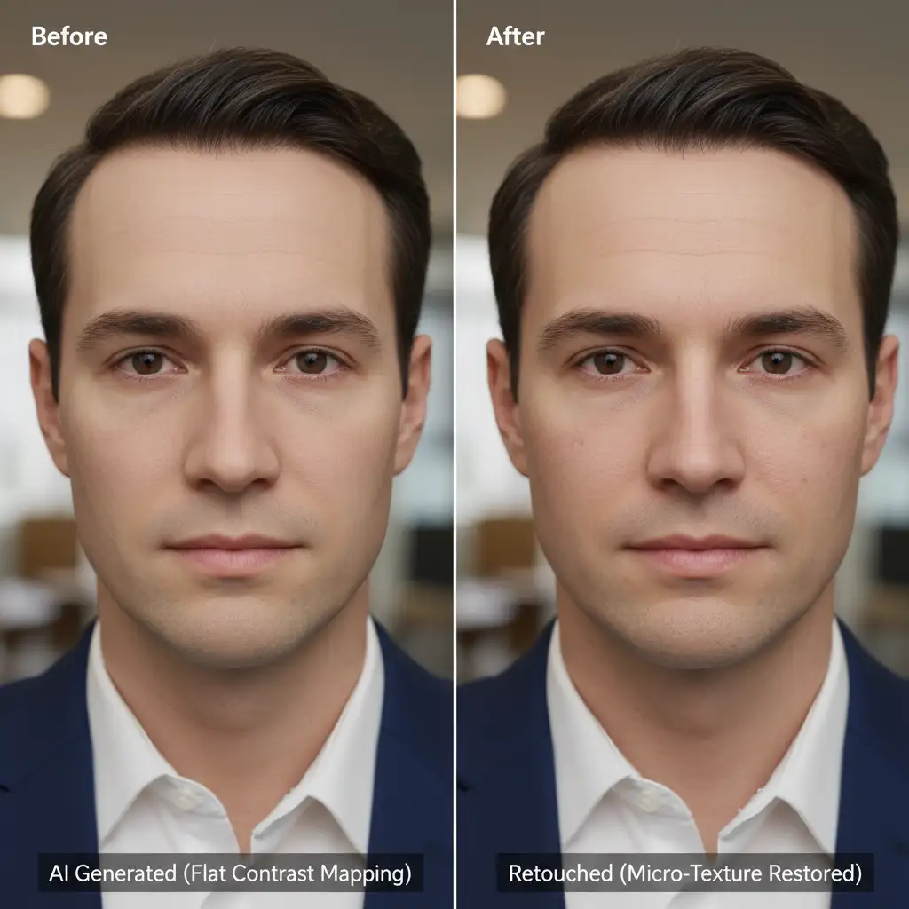 Are your AI-generated corporate portraits suffering from the dreaded “uncanny valley” effect? While models like Midjourney v6 and Stable Diffusion produce stunning compositions, they consistently fail at one crucial detail: human skin. Excessive pixel smoothing leaves these digital faces looking like plastic mannequins, completely lacking the epidermal micro-textures, pores, and subtle peach fuzz that make a photo credible.