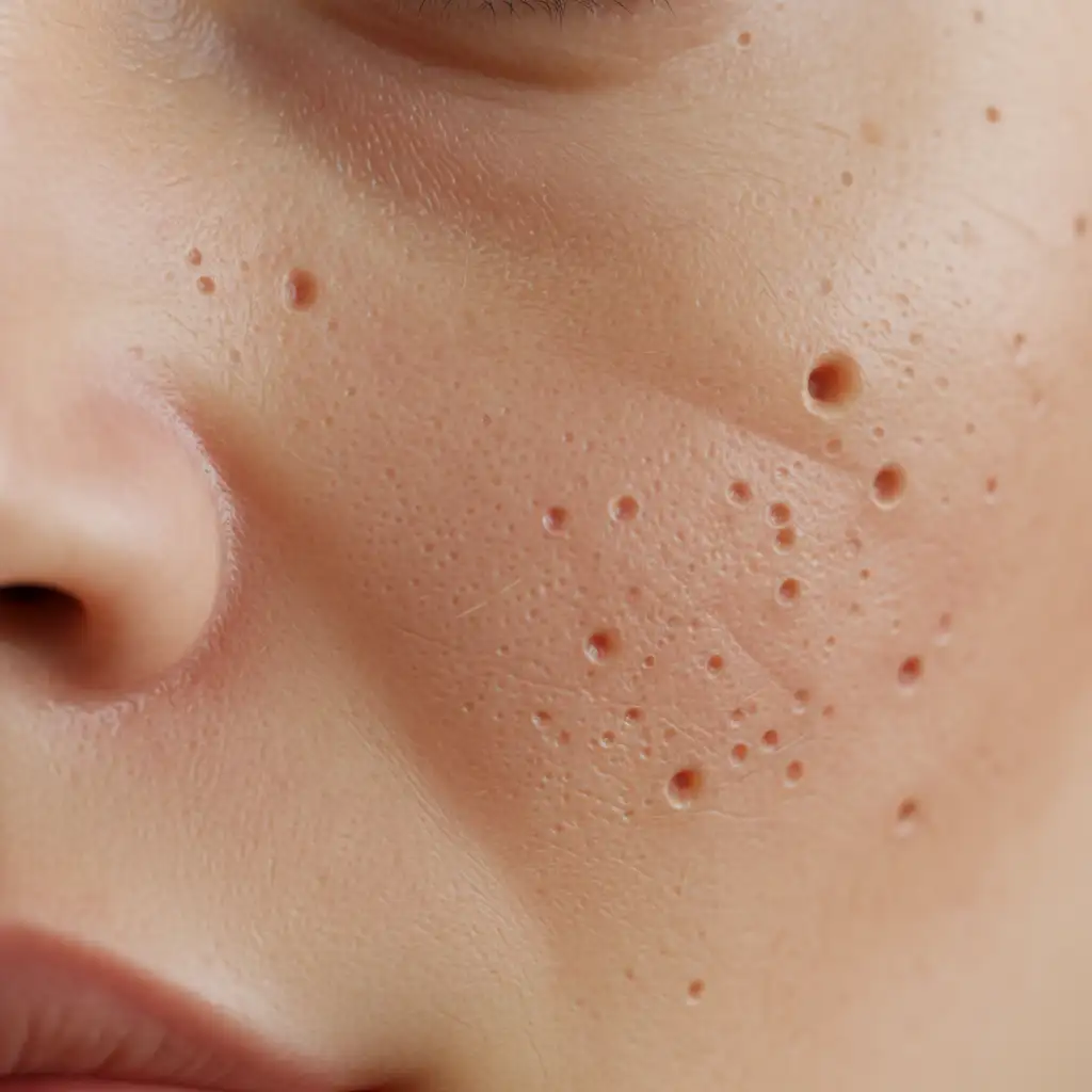 - Source a high-resolution stock photo of real human skin with prominent pores.