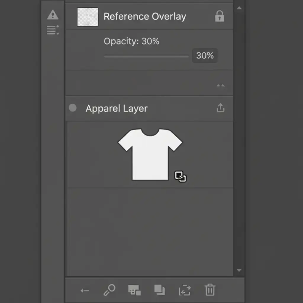 - Place this reference garment on the top layer, lock it, and drop the opacity to 30%.