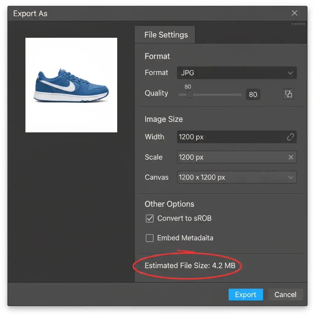 - Optimize the Export: Go to File > Export > Export As. Choose JPG. While Lossless Compression (like PNG) is great for quality, it often exceeds file size limits. Adjust the JPG quality slider until the estimated file size indicator shows strictly under 5MB. Stop recording your action. You can now apply this to hundreds of images via File > Automate > Batch.