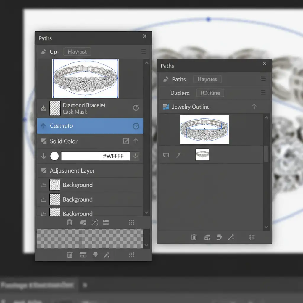 - Create a Clipping Path: Select the Pen Tool (P). Carefully trace the hard edges of your jewelry piece to create a precise Clipping Path. Right-click to make a selection, then mask the jewelry out.